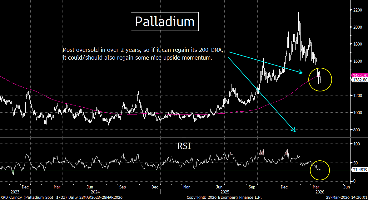Last weekend, we highlighted how the STOXX Europe 600 Index could see a strong bounce…if things calmed down in the Middle East. Since they haven’t calmed down…and the war now seems to be looking like it will last for some time…that bullish scenario has flown out the window. Of course, there will be bounces from time to time…maybe even rather big ones. However, unless the next surge from the US and Israel is something that ends this war quickly…and reopens the Strait (which IS possible)…the underperformance for European stocks will likely continue.
