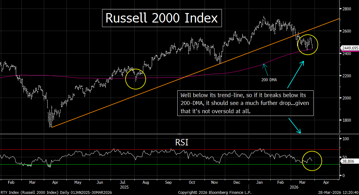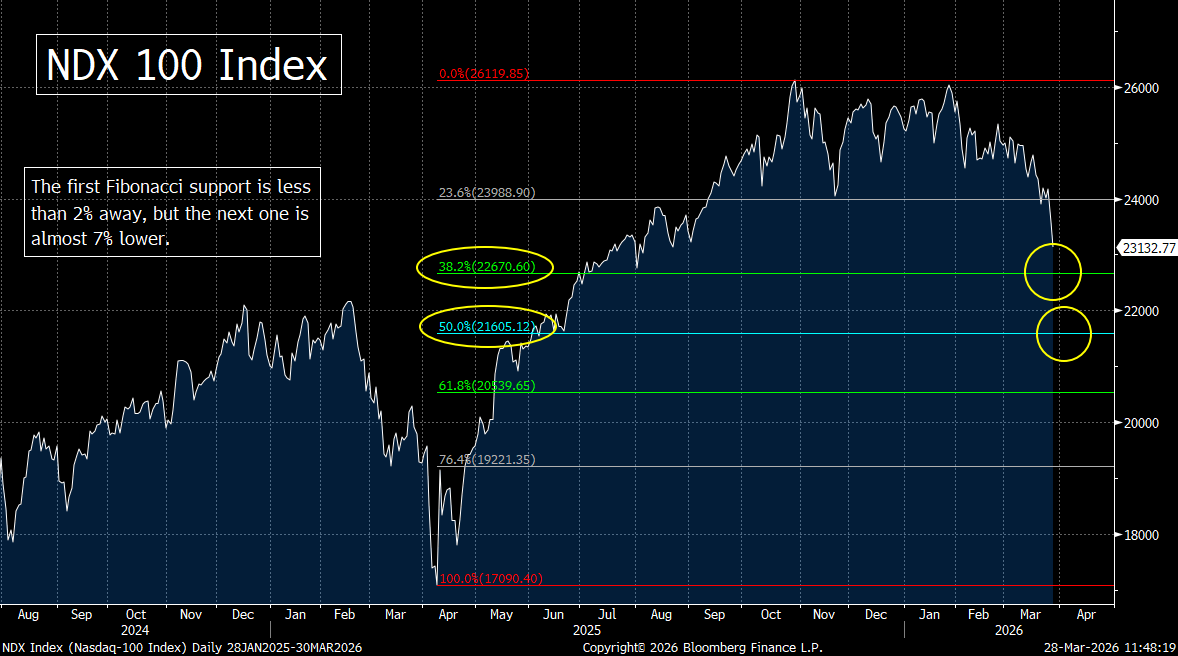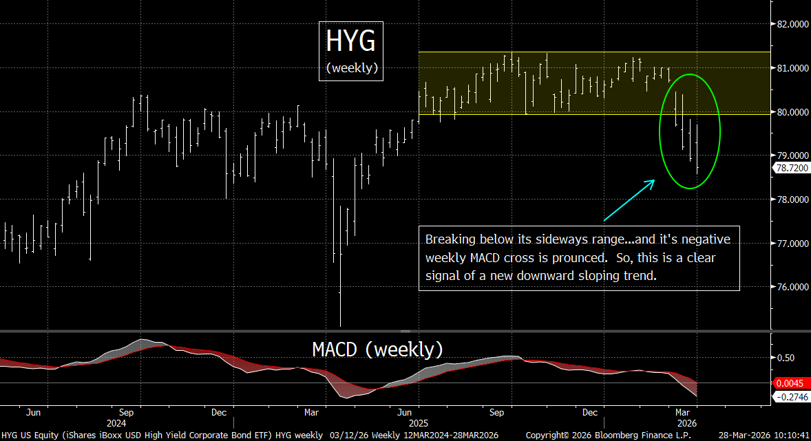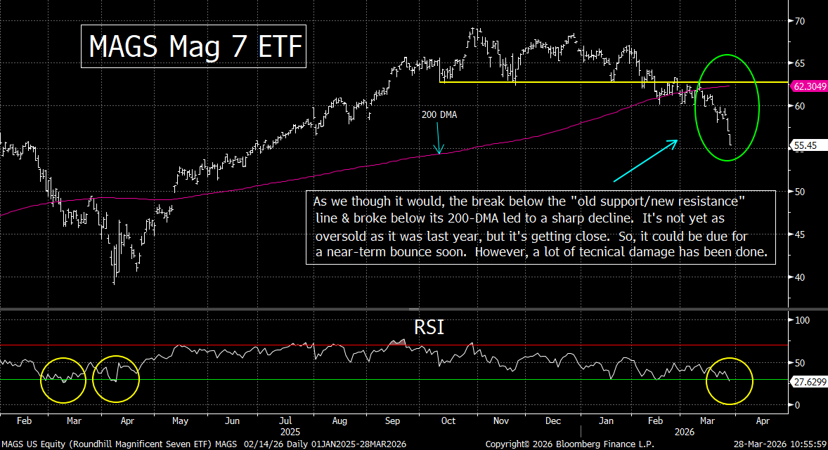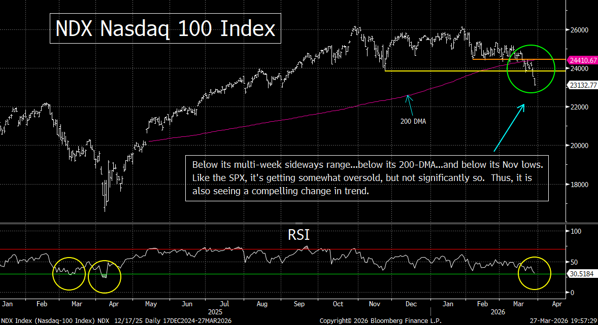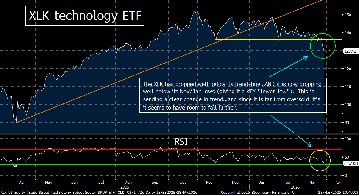 What we’re saying is that although the war in Iran is obviously the most important issue for the markets right now, the tech group is seeing the kind of headwinds that would be causing this sector to decline…even if the price of oil had not skyrocketed over 80% since January.