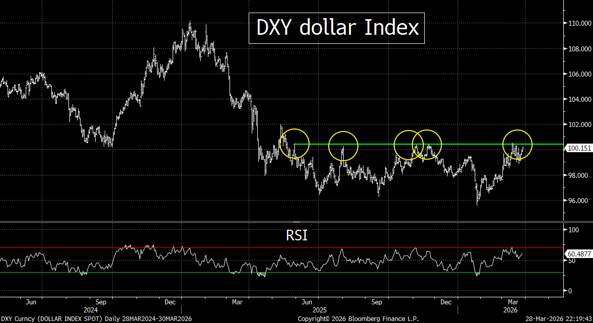 9) Potpourri….US dollar testing key restistance.
