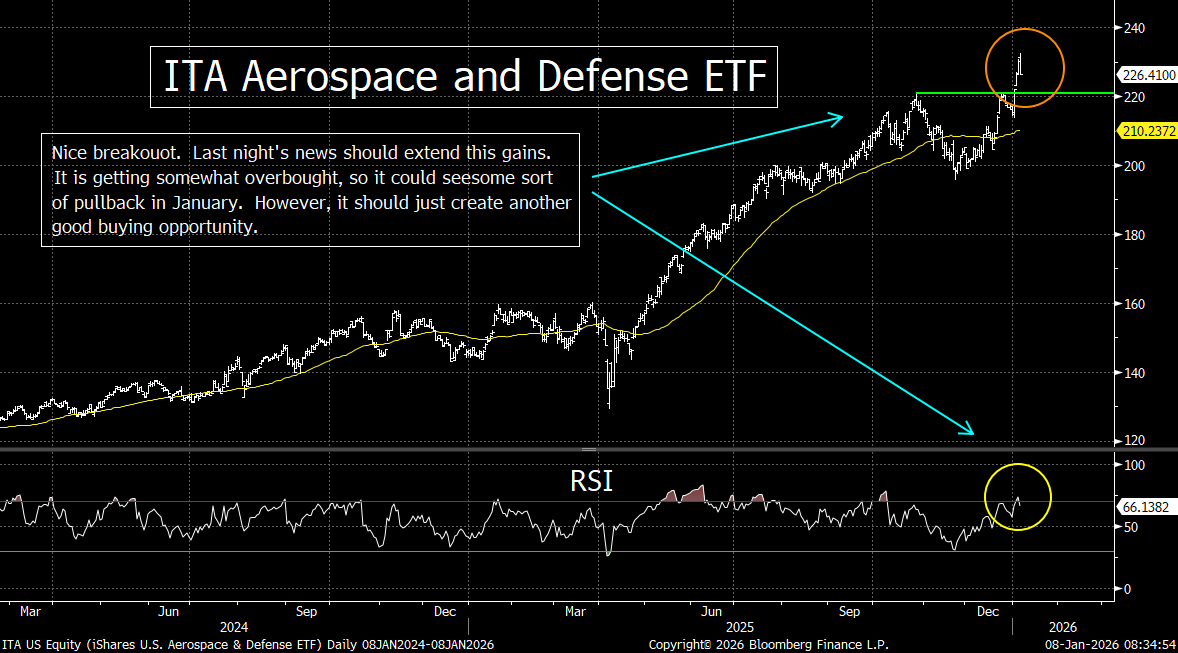 The Aerospace and Defense Industry is getting somewhat overbought near-term. So, it could/should see some sort of pullback as we move through the month of January. However, we believe that will provide just another good buying opportunity. The world is not getting any safer.